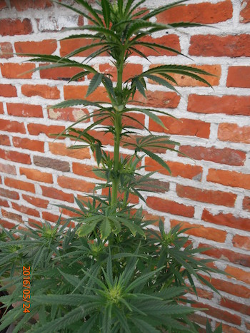 Howdy Ho Everybody! Omdat bij een buitenkweek het weer allesbepalend is, beginnen we daar maar eens mee. Voor de tijd van het jaar kan het stukken beter wat mij betreft. De planten staan nog steeds in de tunnelserre (tunnelkas, red.) en dat is jammer. Tegenover vorig jaar hebben de planten helaas nog niet veel in de volle zon kunnen staan. Omdat felle zon ontbreekt, en de folie van de kas slechts 80 tot 85 procent van het licht doorlaat, beginnen sommige kleine sativaplanten zich te strekken. Daar hou ik niet van, alle ruimte tussen 2 oksels (nodes) is in principe verspilling van energie. De sapstroom moet een grotere afstand afleggen, en de plant op zich valt meer op naargelang ze groter wordt. Langs de andere kant ben ik blij met de serre want ze heeft al goed haar nut bewezen dit seizoen.