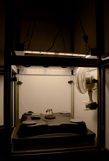 Nou, wat was er dan precies aan de hand? En waarom stonden de blaadjes van Purple Berry Muffinz vanmorgen naar omlaag? Door de lamp te verlagen en op 80% te zetten, werd het in de kast bijna 30 graden, en tikte het water ook de 21 graden aan. De plant richt haar blaadjes dan omlaag om te veel verdamping te voorkomen.