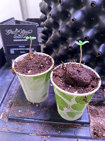 Om ze een bescheiden kans te geven heb ik twee zaailingen in een kartonnen koffiebekertje gepoot. Ik las dat je voor een Solo cup grow echt minerale voeding moet geven. Maar ik houd zelf van organische voeding, dus waarom zou ik mijn planten wat anders geven? Lekker eigenwijs een organische Solo cup kweek en maar zien wat het wordt…