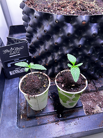 Voor de zekerheid besloot ik echter om drie zaadjes te ontkiemen en de kans op succes wat te verhogen. Ik laat de plantjes dan eerst een beetje groeien om te kijken welke zaailing het sterkste oogt. Die verpot ik dan in de 15 liter airpot, en de rest gooi ik weg. Nu neem ik mezelf dat iedere keer voor, maar ja, na een paar dagen voelde ik toch al een band met die kleine zaailingen.