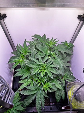 De kleine Cloudz doen het ook goed, ook al ontvangen ze niet zoveel licht als de grotere plant. Ik geef ze twee kleine scheutjes water per dag, met hetzelfde voedingswater als de grote plant. Dat lijkt prima te werken voor de twee kleintjes.