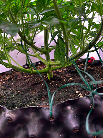 Al met al lijkt het erop dat mijn plan om de kleinere en lagere takken de tijd te geven om het scrognet te bereiken, werkt. Sommige van de nieuwere takken zijn een beetje dun maar ze hebben meer dan genoeg tijd om sterker te worden, voordat de grotere toppen beginnen te groeien.