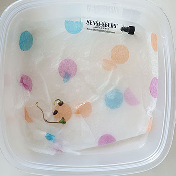 De twee zaadjes die ik had gekregen bij het kopen van CVault zijn inmiddels gekiemd. Deze kunnen nu in de aarde geplant worden. Hiervoor gebruik ik de bakjes van de 500 gram snoeptomaatjes van de lokale supermarkt. Deze hebben een mooi formaat en zijn voorzien van gaten in de bodem om het overtollige vocht eruit te laten. Het ging hier om Dutch Passion – Critical Orange Punch (onderste zaadje) en daar boven de Big Bud van Sensi Seeds.