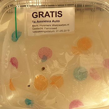 Ik had ook nog vijf zaadjes van de Morning Glory van Barney’s Farm besteld bij Wietzaadjes.nl. Daarbij kreeg ik ook nog een gratis zaadje van het huismerk van Wietzaadjes.nl – Amnesia Auto. Inmiddels zijn er al twee van de vijf Morning Glory zaden ontkiemd, en staan ze samen met de eerder ontkiemde zaadjes in de kleine Bonanza kweekkast met de Hans Panel 100 Watt.