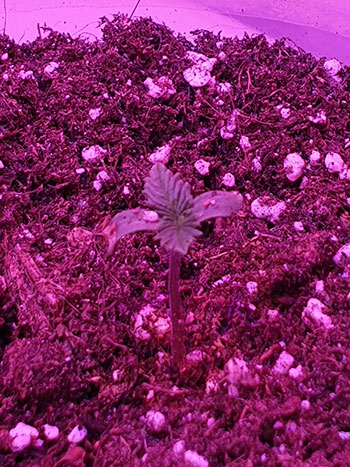 Normaal gesproken zou ik de kleine plantjes onder wit licht zetten maar die lampen liggen nog even in de schuur. Ik ben op het moment niet in staat om ze te pakken, dus leek dit mij even de beste optie voor nu. Zodra er meer zaden zijn ontkiemd, zal ik ze natuurlijk meteen in de CNNBS G-Kit XL plaatsen. Op dit moment zijn de zaailingen nog zo klein, de 315 Watt CMH lamp leek me een beetje overkill.